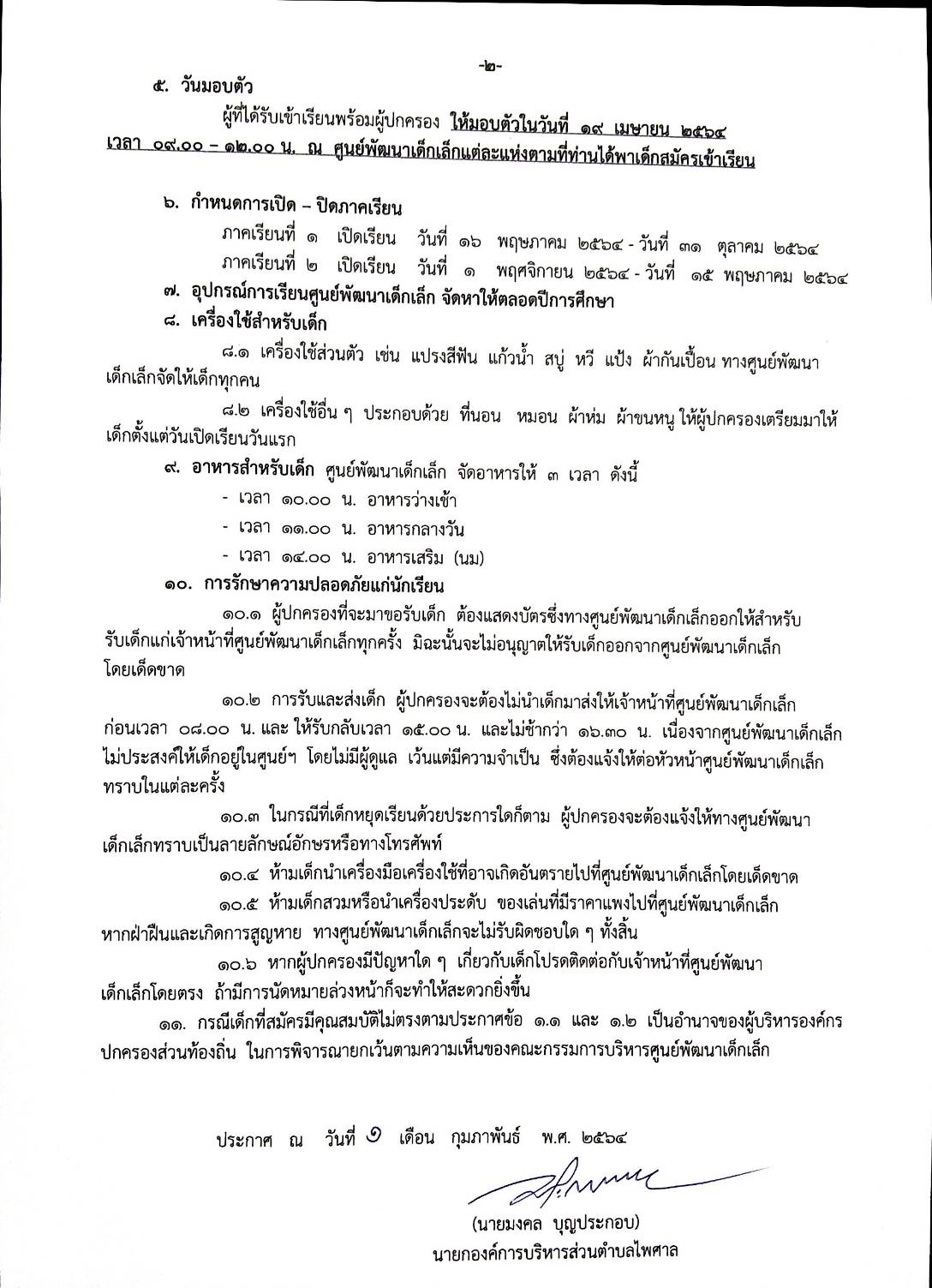 รับสมัครนักเรียนเพื่อเข้าเรียนในศูนย์พัฒนาเด็กเล็กสังกัดองค์การบริหารส่วนตำบลไพศาล ประจำปีการศึกษา ๒๕๖๔