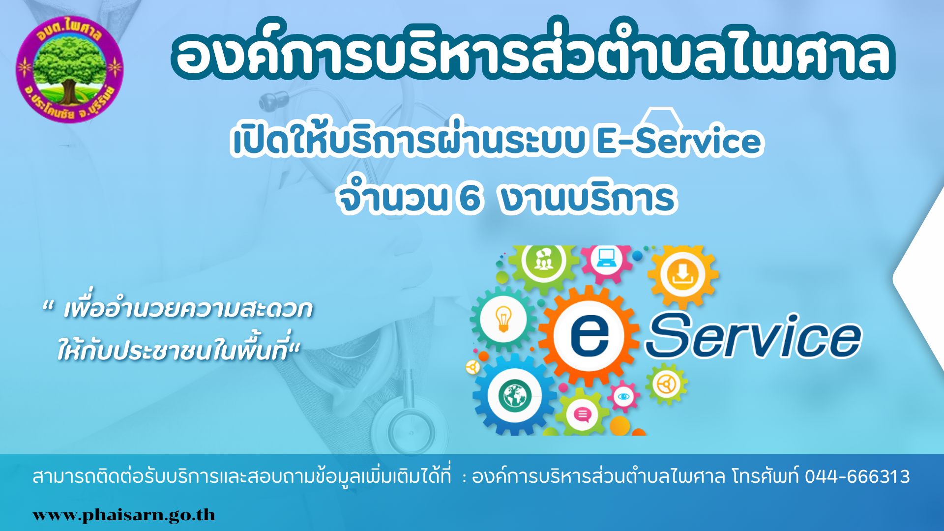 ประชาสัมพันธ์ องค์การบริหารส่วนตำบลไพศาล เปิดระบบให้บริการผ่านช่องทางออนไลน์ (E-Service) ทางเว็บไซต์ขององค์การบริหารส่วนตำบลไพศาล