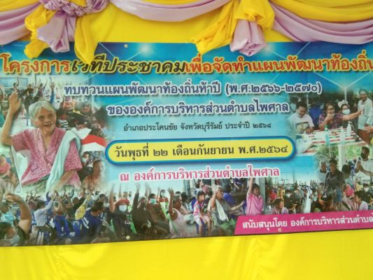 วันที่ ๒๒ กันยายน ๒๕๖๔ เวลา ๐๙.๐๐ น. องค์การบริหารส่วนตำบลไพศาล จัดโครงการเวทีประชาคมเพื่อจัดทำแผนพัฒนาท้องถิ่น ทบทวนแผนพัฒนาท้องถิ่นห้าปี ( พ.ศ.๒๕๖๖ – ๒๕๗๐) -ประชุมประชาคมระดับตำบล เพื่อเสนอโครงการและรับฟังความคิดเห็นของประชาชน - เพื่อนำบรรจุเข้าแผนพัฒนาท้องถิ่นห้าปี (พ.ศ.๒๕๖๖ – ๒๕๗๐) ณ ห้องประชุมปรีทม องค์การบริหารส่วนตำบลไพศาล