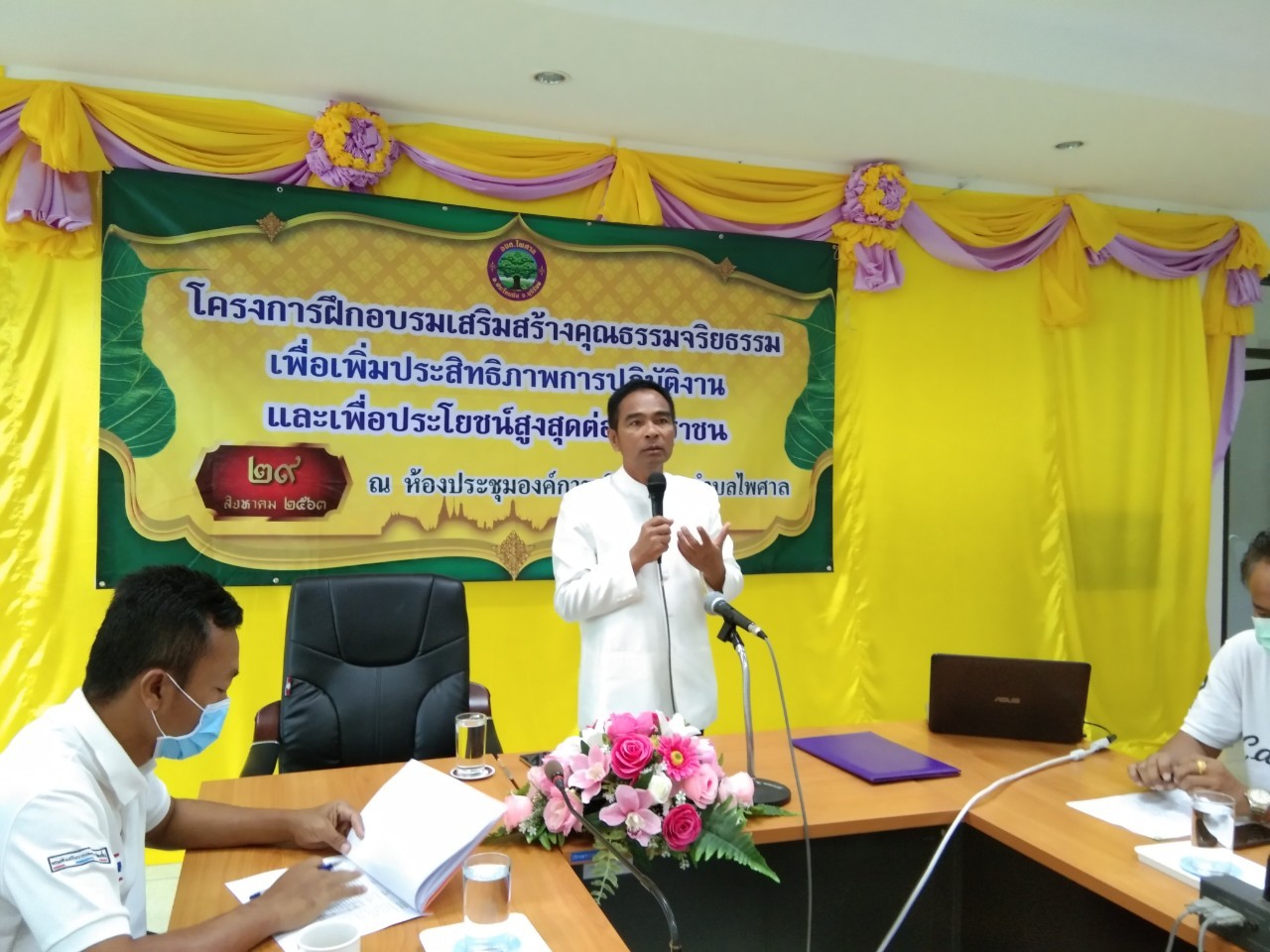 วันที่ ๒๙ สิงหาคม ๒๕๖๓ องค์การบริหารส่วนตำบลไพศาล จัดโครงการอบรมเสริมสร้างคุณธรรม จริยธรรมเพื่อเพิ่มประสิทธิภาพการปฏิบัติงานและเพื่อประโยชน์สูงสุดต่อประชาชน ประจำปีงบประมาณ ๒๕๖๓ ณ ห้องประชุมปรีทม