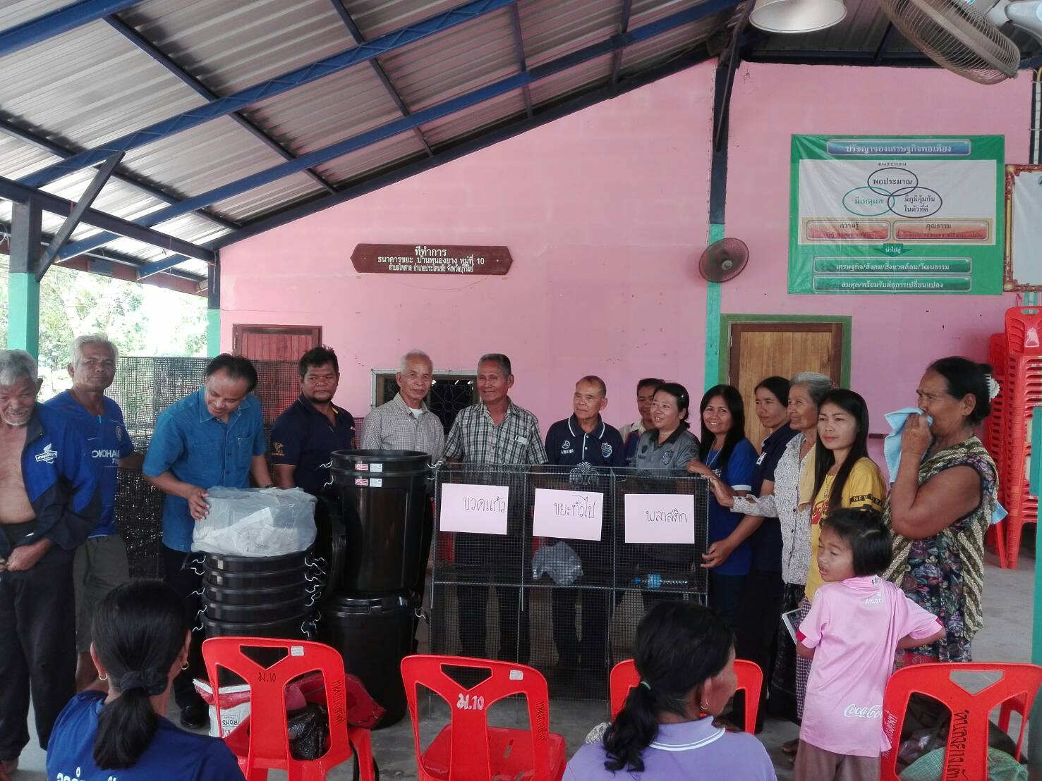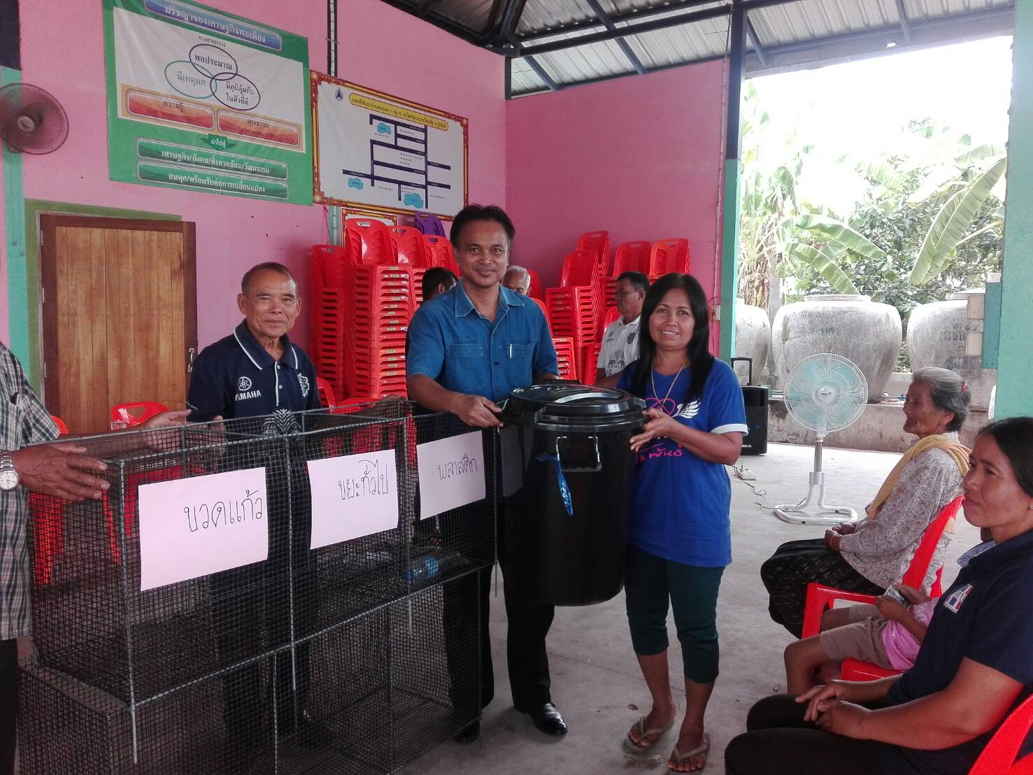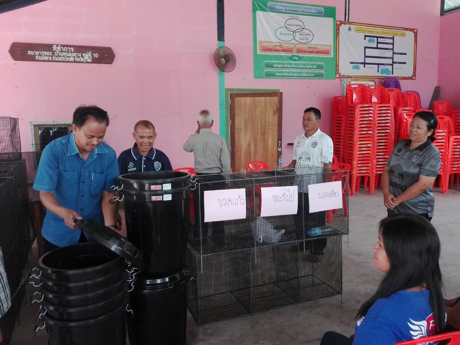 วันที่ 2ุ9 มีนาคม 2562 มอบถังขยะให้ครัวเรือนต้นแบบ บ้านหนองยาง หมู่10 จำนวน 50 ครัวเรือน