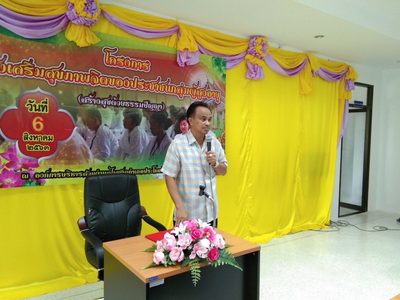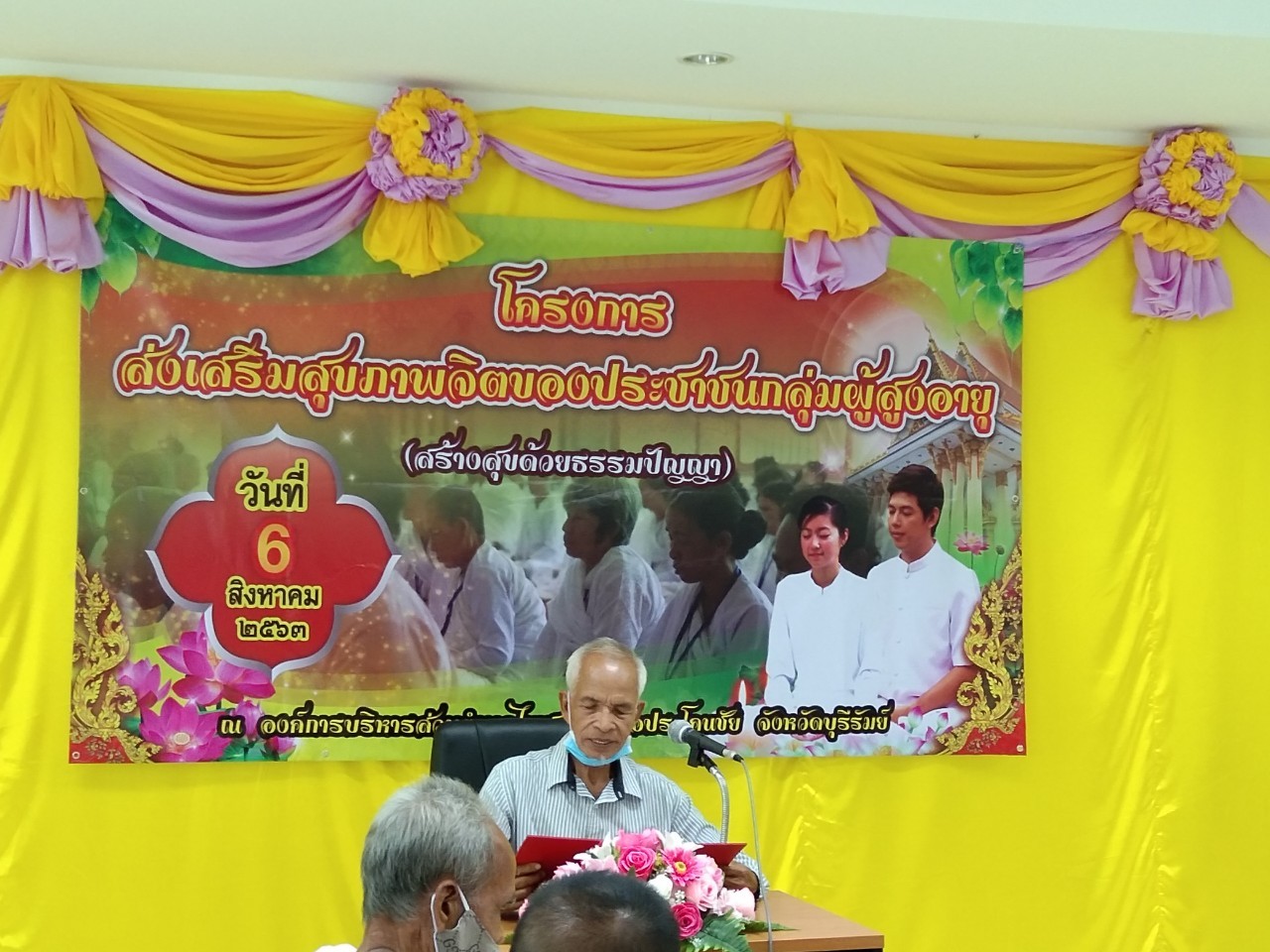 วันที่ ๖ สิงหาคม ๒๕๖๓ นายเสมอ ศรีพรหม รองนายก อบต.ไพศาล เป็นประธานเปิดโครงการส่งเสริมสุขภาพจิตของประชาชนกลุ่มผู้สูงอายุ ( สร้างสุขด้วยธรรมปัญญา)