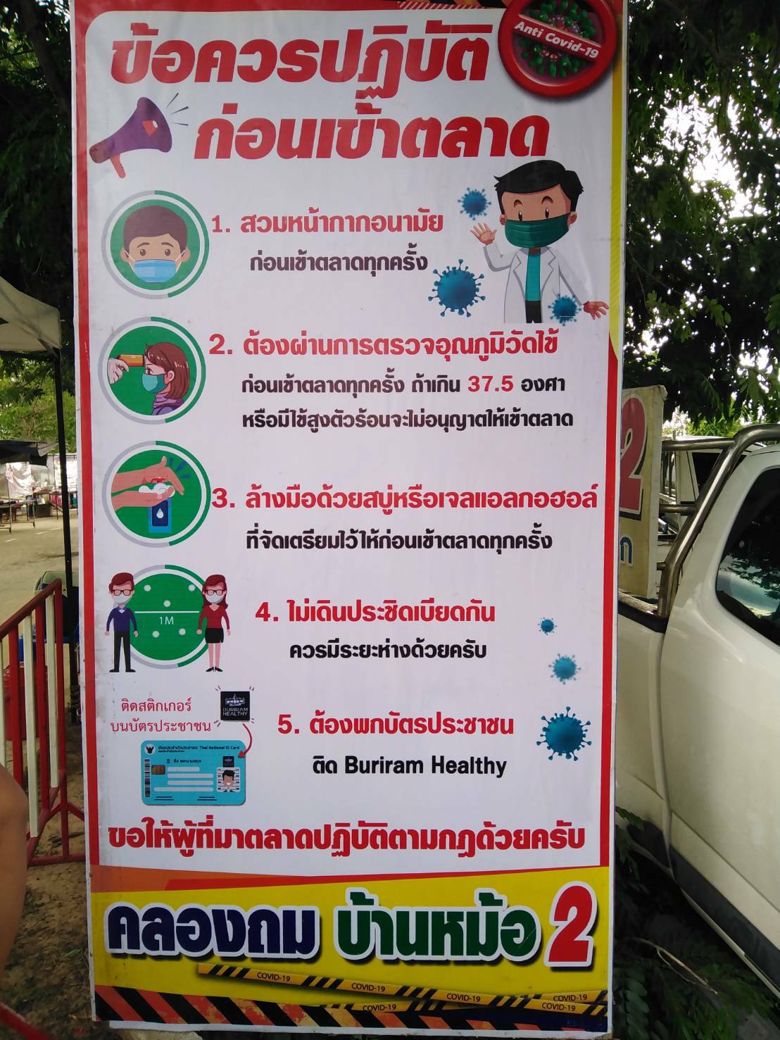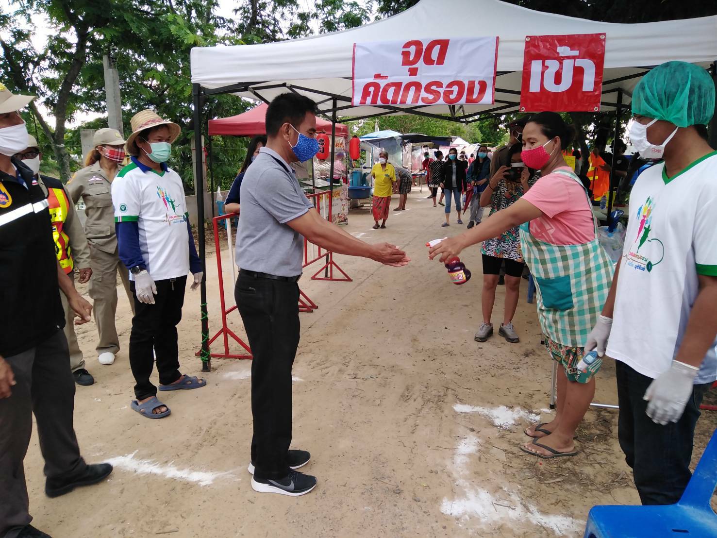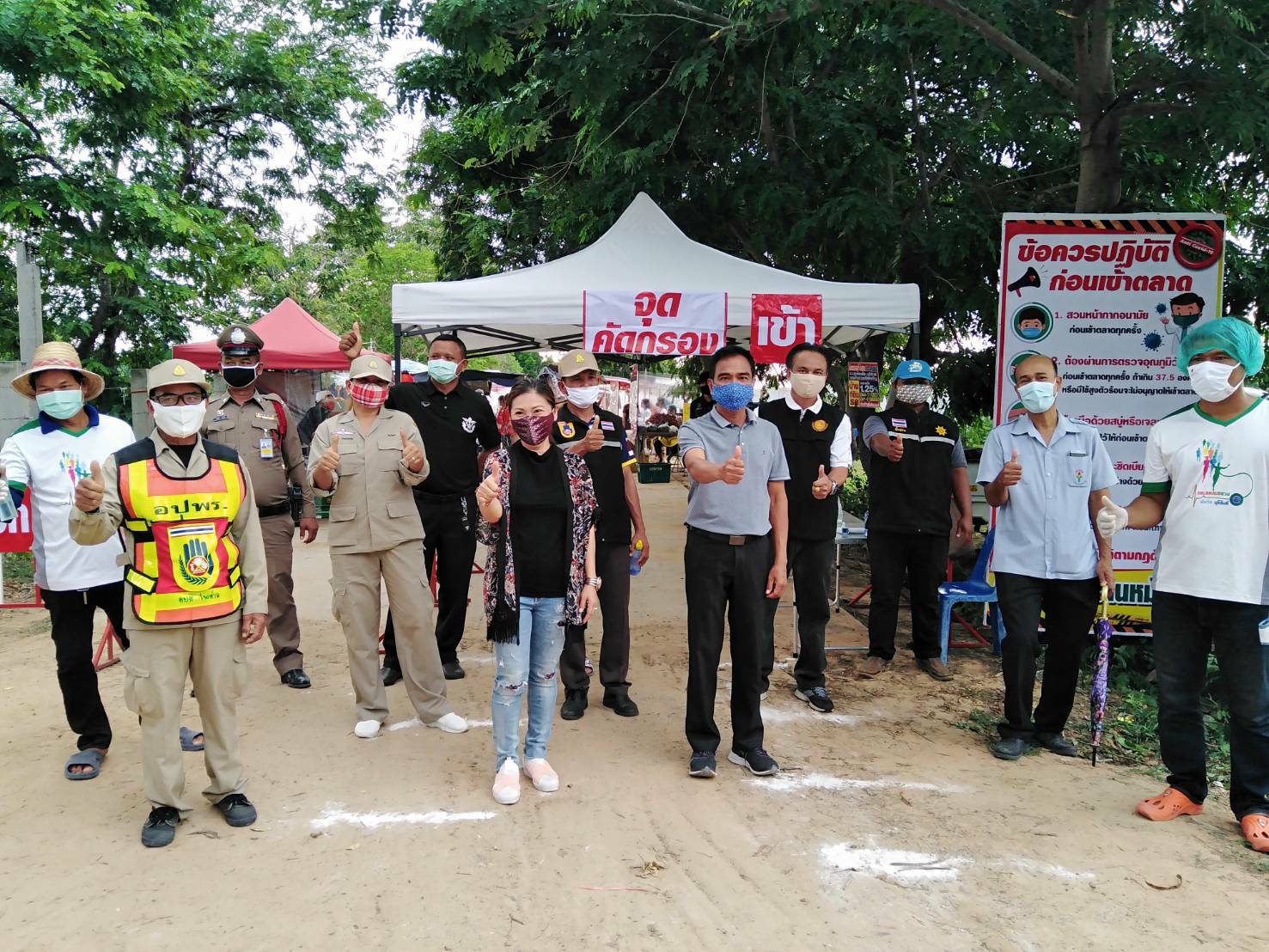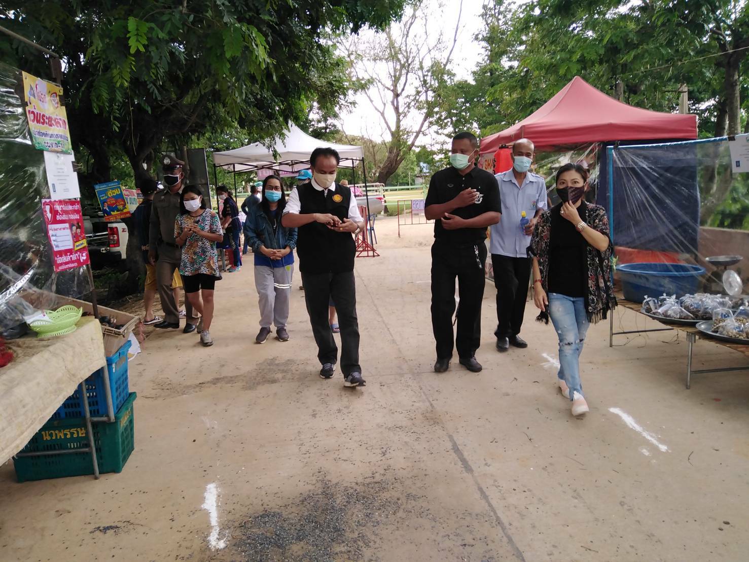 วันที่ ๗ มิ.ย. ๖๓ นายมงคล บุญประกอบ ประธานคณะกรรมการควบคุมโรคติดต่อระดับตำบลไพศาล พร้อมด้วย นายโอภาส ชุมนุมดวง ปลัด อบต. ผอ.รพสต. และเจ้าหน้าที่ตำรวจ อปพร. คณะกรรมการ ลงพื้นที่ตรวจสอบความเรียบร้อยและการจัดระเบียบตลาดนัดคลองถม ม.๘ ต.ไพศาล