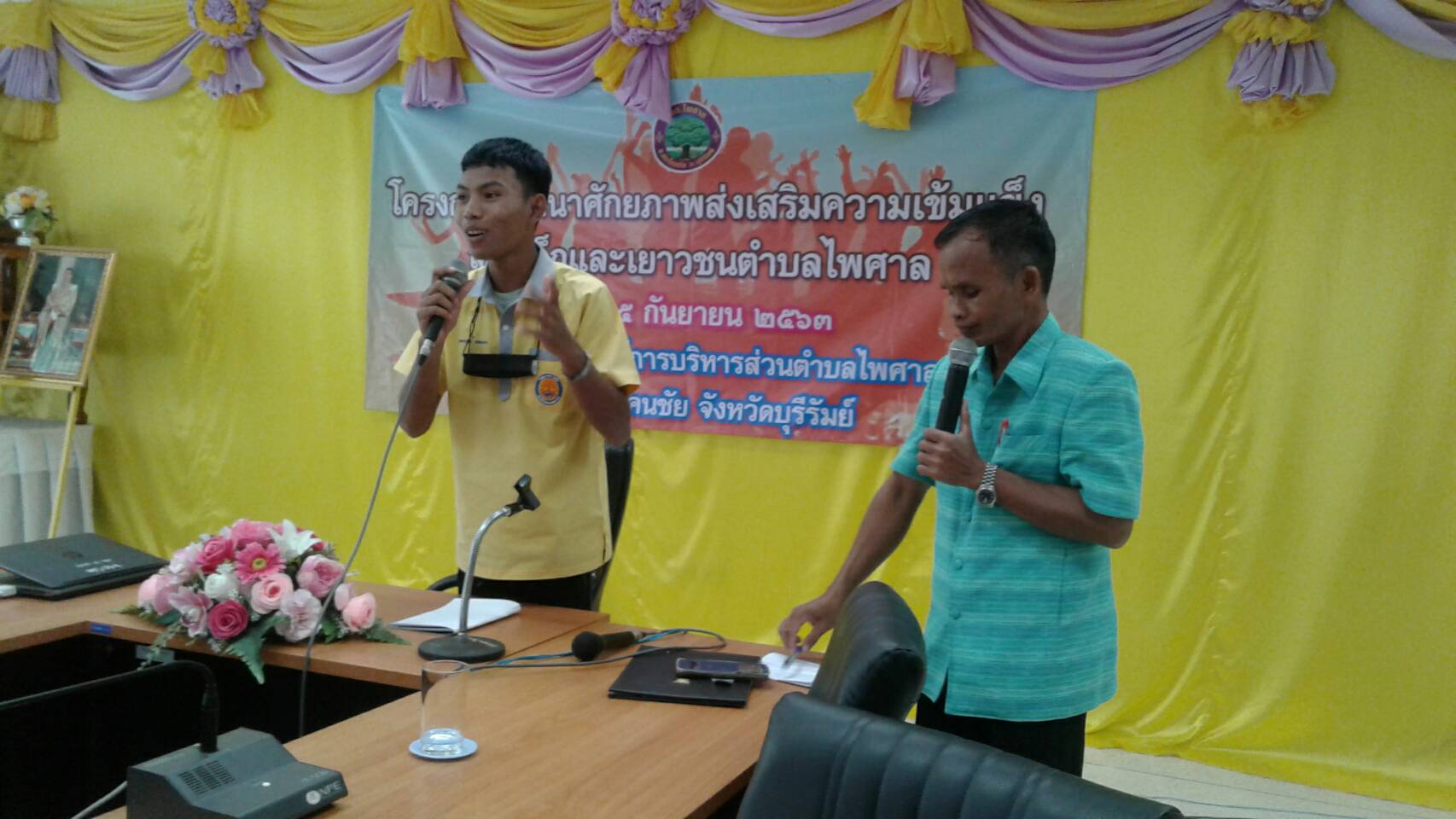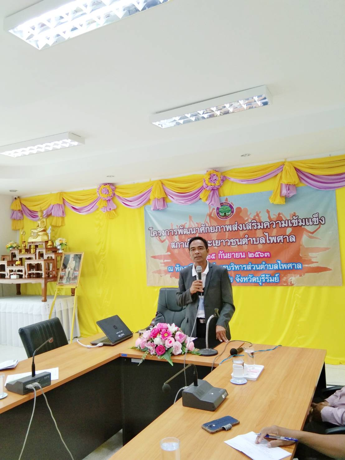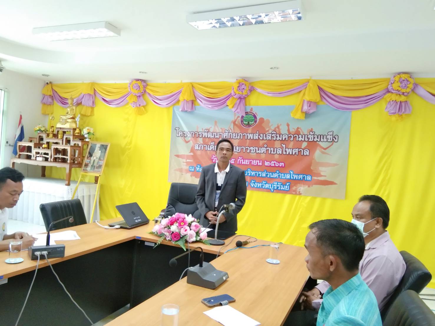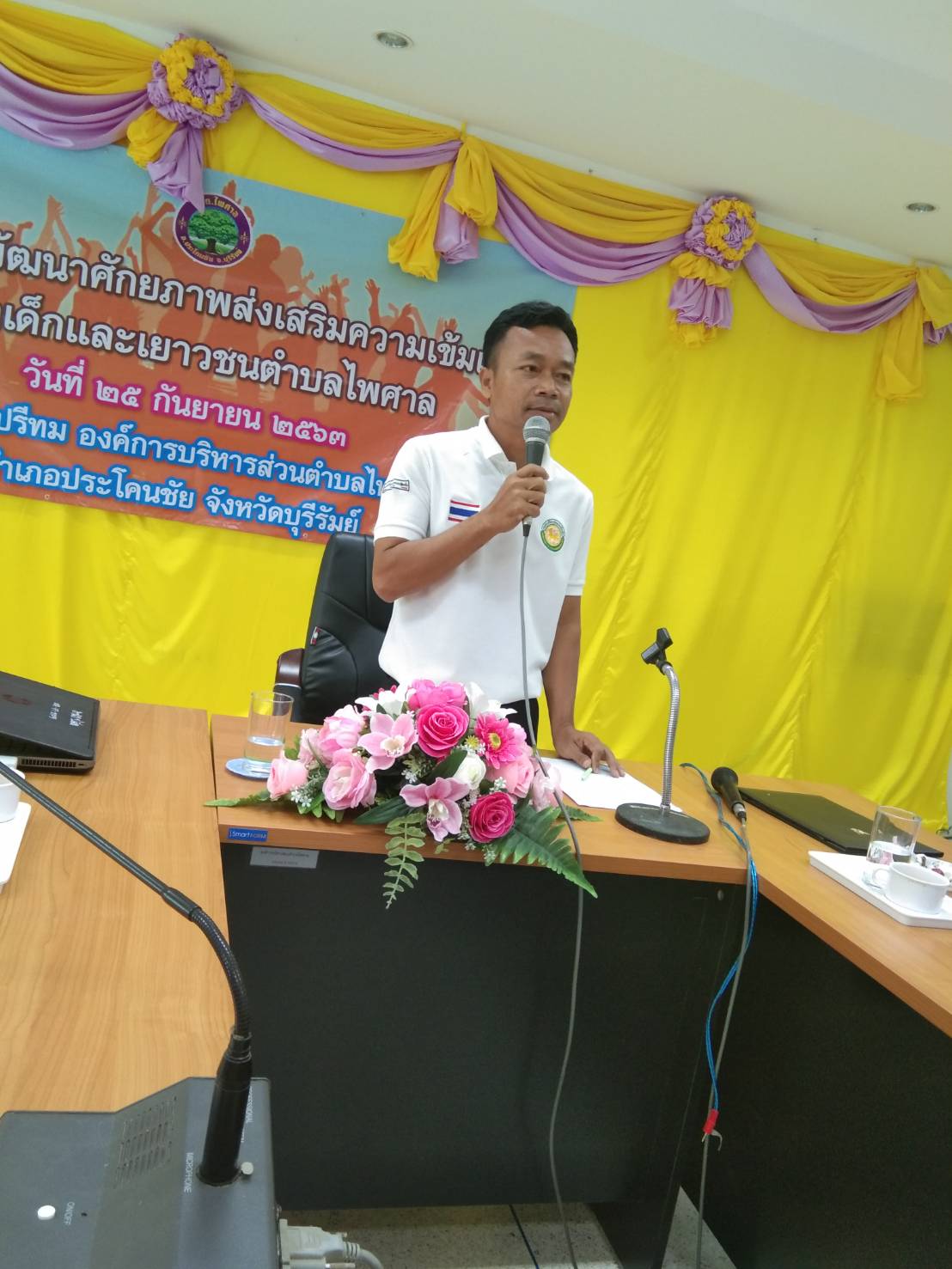 วันที่ ๒๕ กันยายน ๒๕๖๓ นายมงคล บุญประกอบ นายกองค์การบริหารส่วนตำบลไพศาล เป็นประธานเปิดโครงการพัฒนาศักยภาพส่งเสริมความเข้มแข็งสภาเด็กและเยาวชนตำบลไพศาล ณ ห้องประชุมองค์การบริหารส่วนตำบลไพศาล จัดทำโครงการโดย กองสวัสดิการสังคม องค์การบริหารส่วนตำบลไพศาล