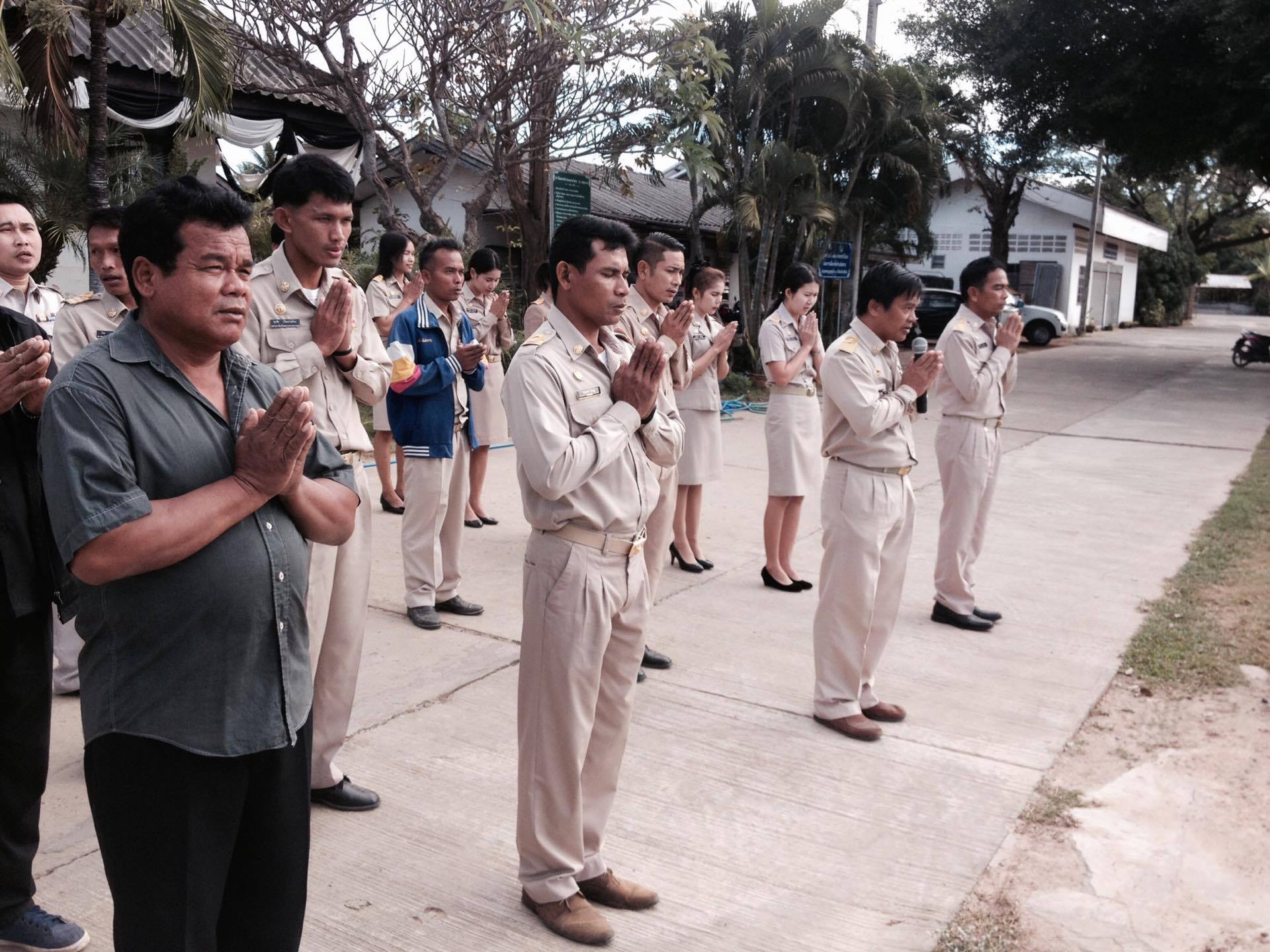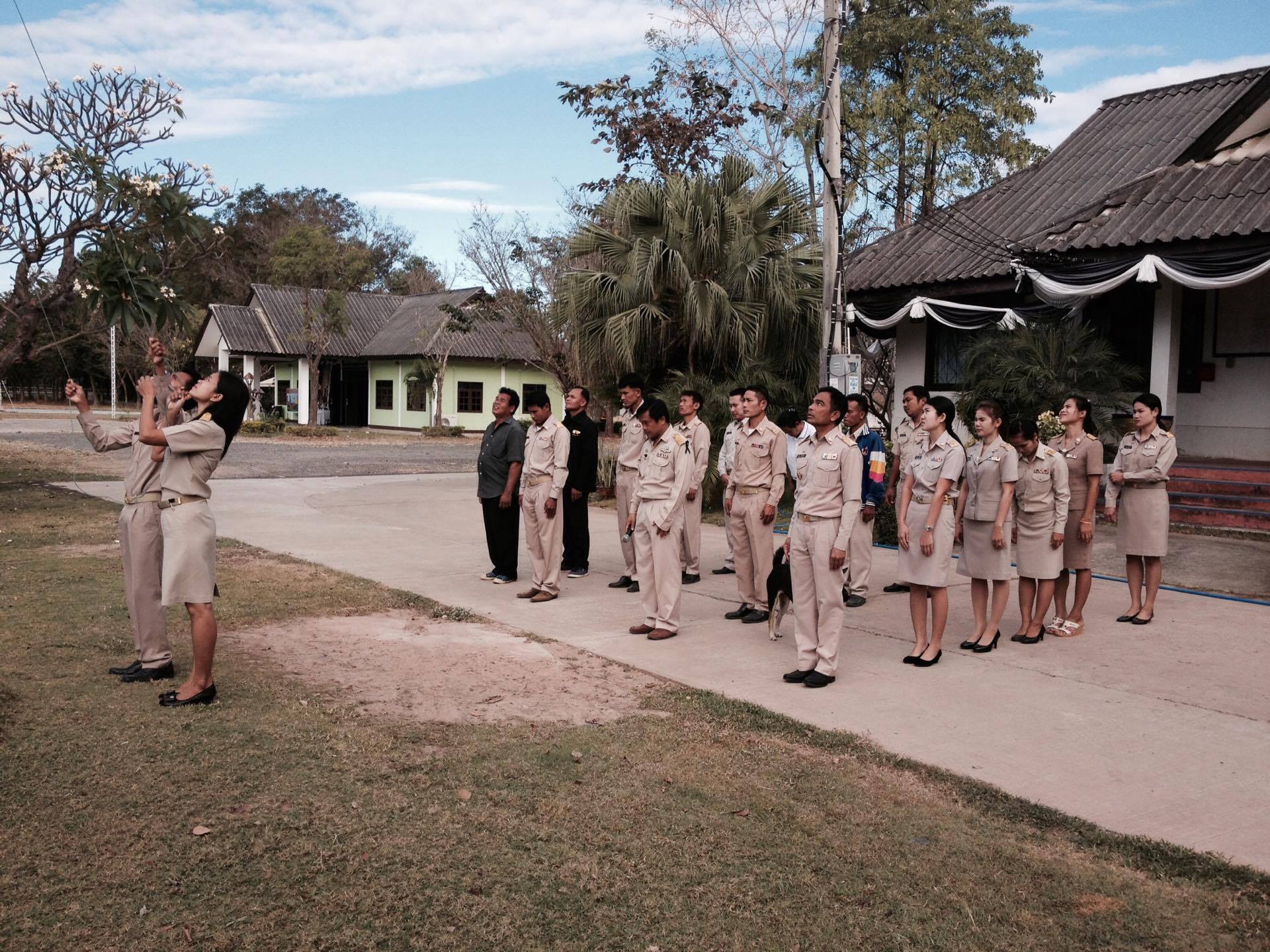 ภาพบรรยากาศ ผู้บริหาร ข้าราชการ พนักงานราชการ พนักงานจ้างเหมา องค์การบริหารส่วนตำบลไพศาลเคารพธงชาติ ทุกเช้าวันจันทร์ ตามนโยบายของ นายกมงคล บุญประกอบ