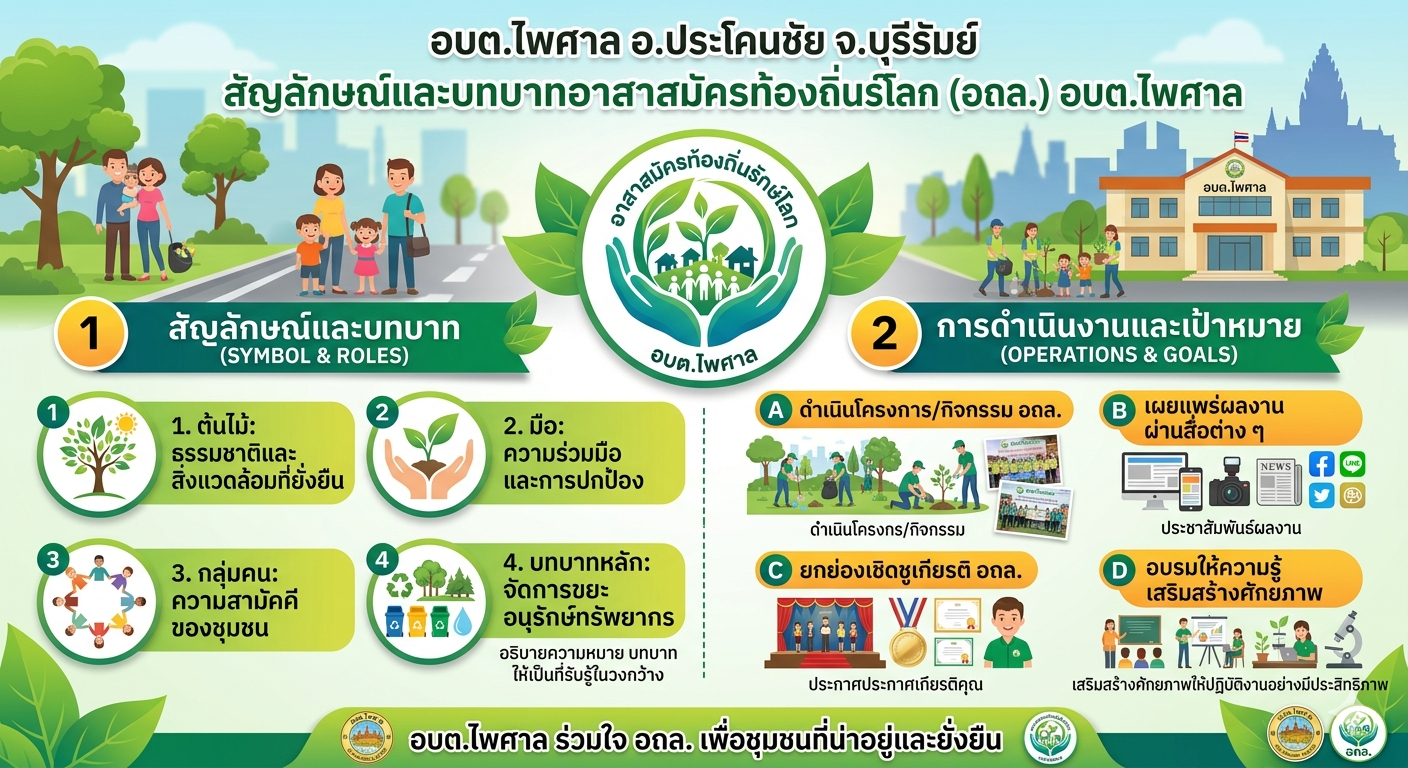 ประชาสัมพันธ์ สัญลักษณ์และบทบาทของอาสาสมัครท้องถิ่นรักษ์โลก อบต.ไพศาล