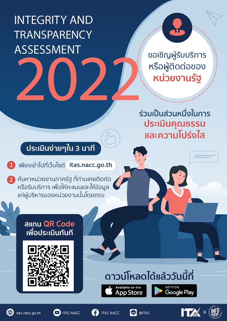 ประชาสัมพันธ์ ขอเชิญชวนผู้รับบริการหรือมาติดต่อกับองค์การบริหารส่วนตำบลไพศาล ร่วมเป็นส่วนหนึ่งในการประเมินคุณธรรมและความโปร่งใสในการดำเนินงานขององค์การบริหารส่วนตำบลไพศาล