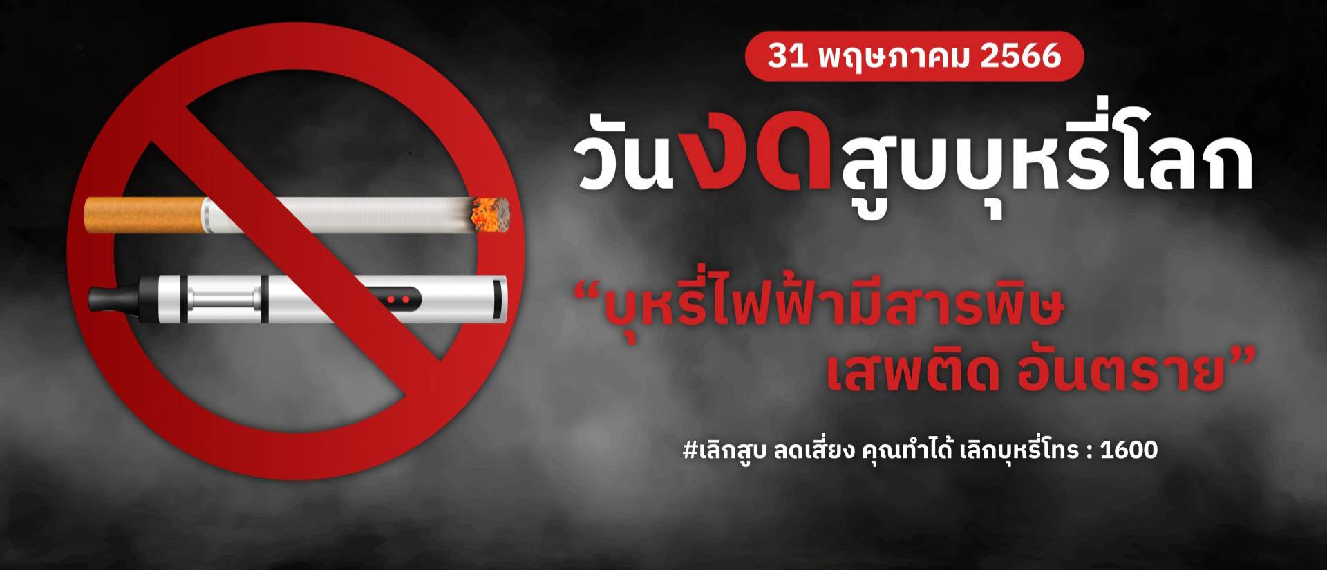 31 พฤษภาคม วันงดสูบบุหรี่โลก 2566 World No Tobacco Day คำขวัญวันงดสูบบุหรี่โลก ปี 66 คือ "บุหรี่ไฟฟ้ามีสารพิษ เสพติต อันตราย"