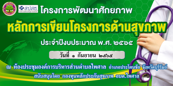 วันที่ 1 กันยายน 2565 เวลา 09.00 น. นายสมพงษ์ จันสิงห์ นายกองค์การบริหารส่วนตำบลไพศาล เป็นประธานเปิดโครงการพัฒนาศักยภาพหลักการเขียนโครงการด้านสุขภาพ ประจำปีงบประมาณ 2565 โดยมีวัตถุประสงค์ 1.เพื่อให้ทุกภาคส่วน มีส่วนร่วมในการจัดทำโครงการด้านสุขภาพ 2. เพื่อกำหนดแนวทางการพัฒนาสุขภาวะของประชาชนในพื้นที่ 3.เพื่อนำมาใช้เป็นแนวทางในการแก้ไขปัญหาและกำหนดทิศทางการดำเนินงานในการสนับสนุนงบประมาณให้แก่หน่วยบริการสุขภาพประชาชนและภาคีที่เกี่ยวข้อง 4.เพื่อรับฟังปัญหาความต้องการของประชาชนในพื้นที่ในการส่งเสริมป้องกันรักษาฟื้นฟูเกี่ยวกับสุขภาพ 5.เพื่อนำโครงการ/กิจกรรมด้านสุขภาพมาประกอบพิจารณาในการจัดทำโครงการให้สอดคล้องกับบริบทและพื้นที่ ณ ห้องประชุมปรีทม องค์การบริหารส่วนตำบลไพศาล
