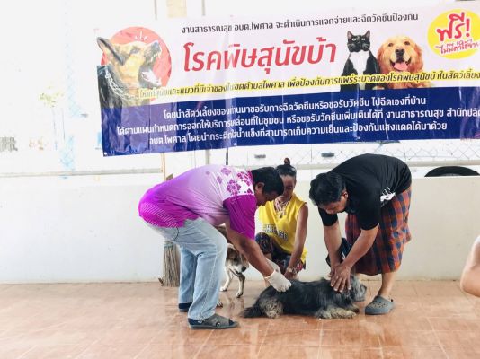วันที่ 21- 24 มีนาคม 2566 งานด้านสาธารณสุข องค์การบริหารส่วนตำบลไพศาล ลงพื้นที่ออกให้บริการฉีดวัคซีนป้องกันโรคพิษสุนัขบ้า ในเขตพื้นที่ตำบลไพศาล ตามโครงการสัตว์ปลอดโรคคนปลอดภัยจากโรคพิษสุนัขบ้า ประจำปีงบประมาณ 2566