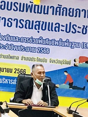 วันที่ 15 มิถุนายน 2566 นายสมพงษ์ จันสิงห์ นายกองค์การบริหารส่วนตำบลไพศาล เป็นประธานเปิดโครงการอบรมพัฒนาศักยภาพอาสาสมัครสาธารณสุขและประชาชนในการปฐมพยาบาลเบื้องต้นและการช่วยคืนชีพขั้นพื้นฐาน (CPR)ประจำปีงบประมาณ 2566โดยมีอาสาสมัครสาธารณสุขและประชาชนทั่วไปในเขตตำบลไพศาลเข้าร่วมฝึกอบรมในครั้งนี้ ณ ห้องประชุมปรีทม องค์การบริหารส่วนตำบลไพศาล