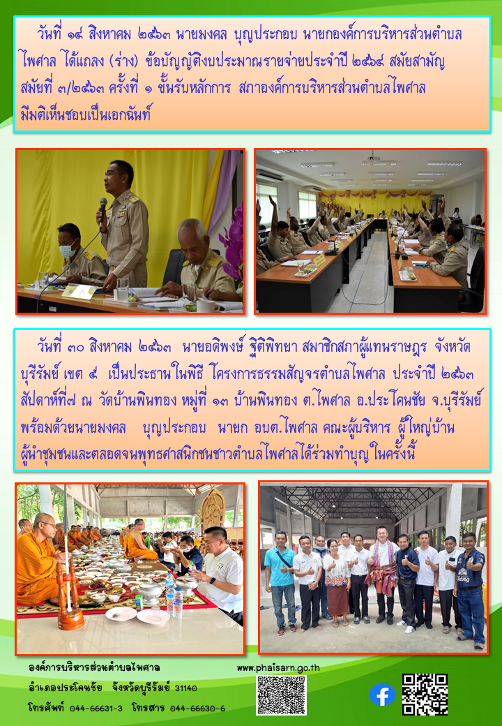 รายงานการประชุมสภาองค์การบริหารส่วนตำบลไพศาล